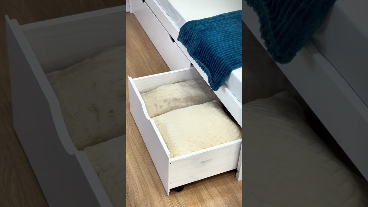 Bett mit Stauraum MIA 90x190 cm, Kiefer weiß